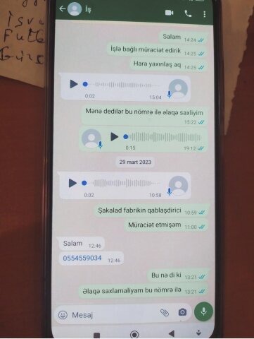 ““Tik-tok” sosial şəbəkəsində işlə bağlı rast gəldiyim elanda cəlbedici bir məlumatla qaşılaşdım. Təklif olunan vakansiya adı məlum olmayan şokolad fabriki ilə bağlı idi. Elanda iş saatının 9 saat, aylıq əmək haqqının isə 900 manat olduğu bildirilirdi.