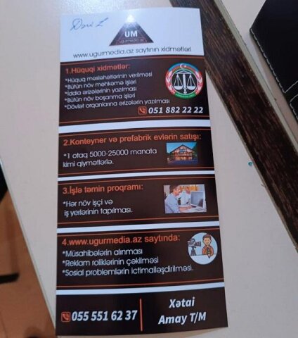 Qeyd edək ki, mətbu orqan kimi çıxış edən edən “ugurmedia.az” saytında olan məlumata görə, bu informasiya portalı müxtəlif xidmətlərlə yanaşı, həm də elanlar əsasında insanları “işə” düzəltdiyini iddia edir. Lakin vətəndaşın şikayətindən də məlum olduğu kimi, “ugurmedia.az”-ın bu istiqamətdəki fəaliyyətinin hansı dərəcədə şəffaf olduğu böyük sual doğurur.
